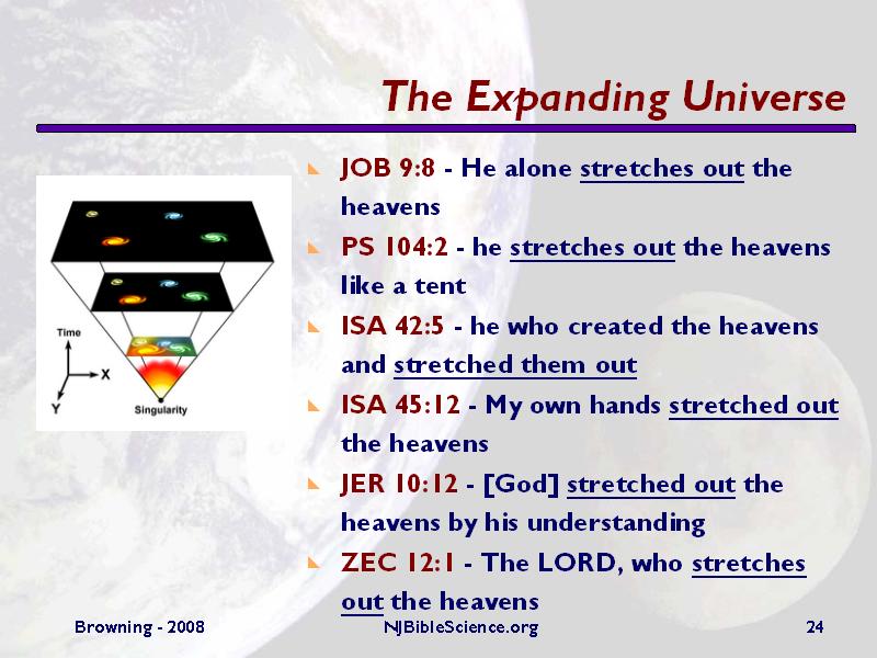 There are also quite a few scriptures that describe how God “stretched out” the heavens, which is consistent with the Big Bang concept.