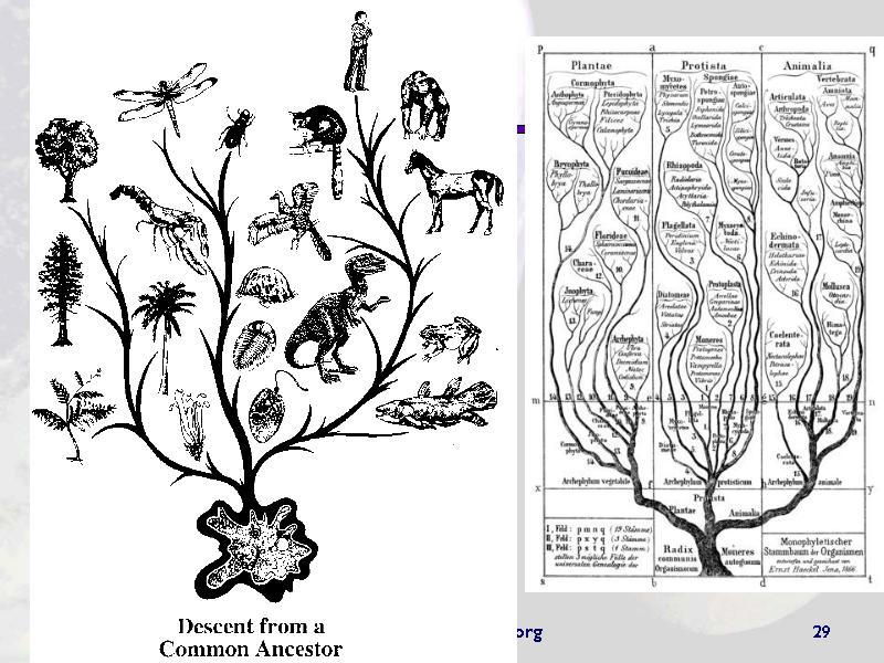 An illustration of the evolutionary concept of descent from a common ancestor (from Morris, John D., The Young Earth, Green Forest, AR: Master Books, 1997). This type of illustration appears in all evolutionary text books. The thing of significance to note in these diagrams is that there is actual existing or fossil data only at the leaf nodes, or tips of the branches! If anything is shown at a branching point, it is typically a hypothetical plant or animal. The actual scientific-fossil data reflects not the pattern of a large single tree as shown above, but rather a “forest of smaller individual trees” representing the originally created kinds that have diversified to the extent that their genetic potential allows. It is admitted to even by evolutionists that the predominate mode of the fossil record is one of “sudden appearance” followed by “stasis” (no change).