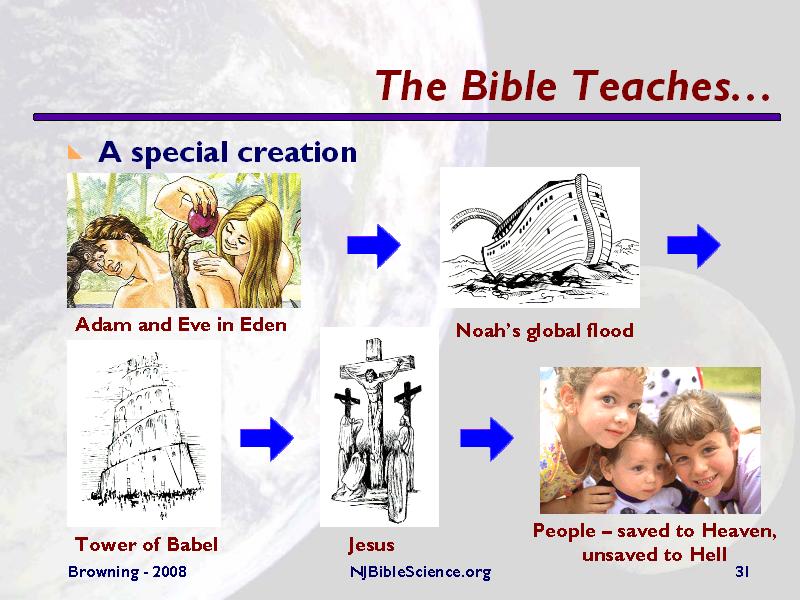 Biblical history teaches something much different. At the beginning, God created a mature and functional place for people to live. People are at the center of the creation. All of history revolves around people and God’s plan for us. The first people, Adam and Eve, chose to disobey God and unleashed God’s curse upon the creation. The world became a wicked place, to the extent that God decided to kill all of the people and land animals in a global flood, saving just a remnant to reseed the Earth afterwards. The population started to grow again. God wanted the people to spread out around the world, but they liked staying together at Babel and decided to build a tall tower to the heavens. God confused their language so that they couldn’t work together anymore, forcing them to move on as God wanted. But from the beginning God had a plan to redeem mankind from their sinful nature. He called Abraham to found the nation of Israel, through which God would work His plan. When the time was right, God sent His Son, Jesus, to teach us much more about how we should live and relate to God. Most importantly though, Jesus died on a cross as a sacrifice for the sins of the world. He paid the penalty that a just and holy God demands for sin. This was the single most important event in all of history and changed things forever. Now those who put their trust in Christ as Lord and savior can have assurance of life everlasting in heaven one day. Unlike those professing the evolutionary worldview, Christians have much to look forward to!