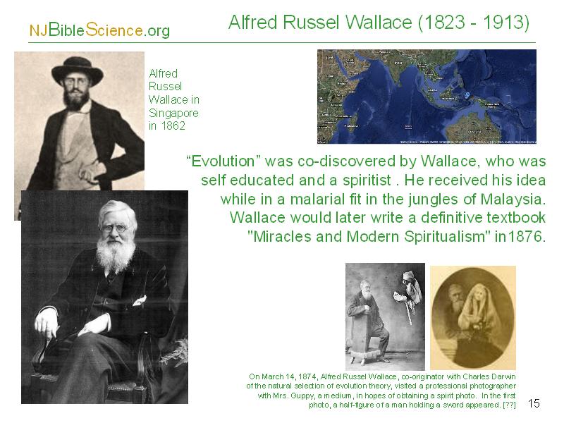 At 21 Wallace was introduced to spiritualism and would later become a leader in the spiritism movement and write on the subject. Wallace wrote a two part article on the subject and later the definitive textbook, Miracles and Modern Spiritualism in 1876. In the same year Wallace published a classic, Geographical Distribution of Animals, dispelling any notions that his interest in spiritism was an aberration of old age. [Morris 1989, 171].