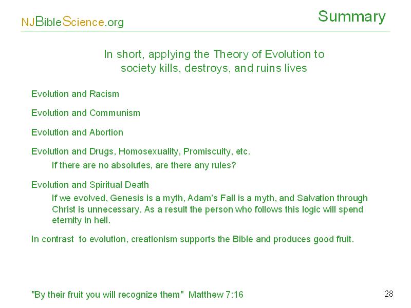 In short, the Theory of Evolution kills and destroys, ruins lives, fosters war, racism, and communism. Destroys souls by negating Bible and Cross.