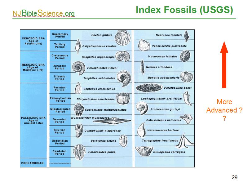 Recall that index fossils are used to identify the “age” of the strata. Why don’t the index fossils increase dramatically in complexity as you go up the column ?