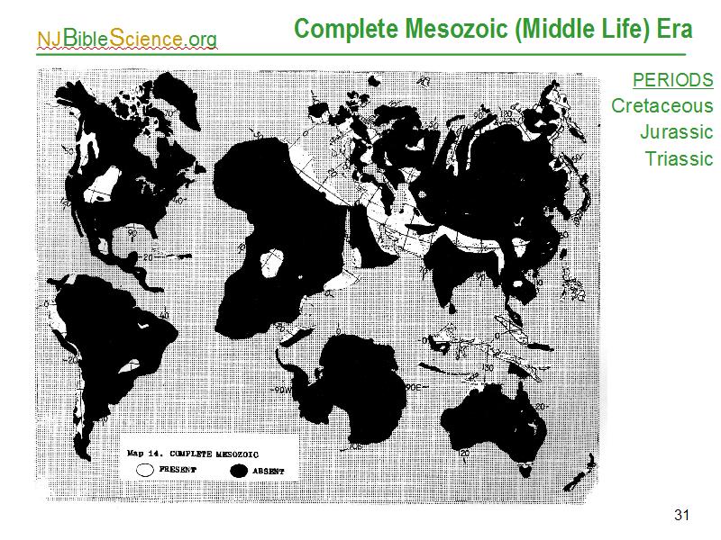 Looking at the middle life (Mesozoic Life); again see that this a minority fraction of the land surface of earth.