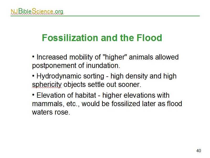 Many aspects of fossilization can be described by the Noachian Flood, as shown on the slide.
