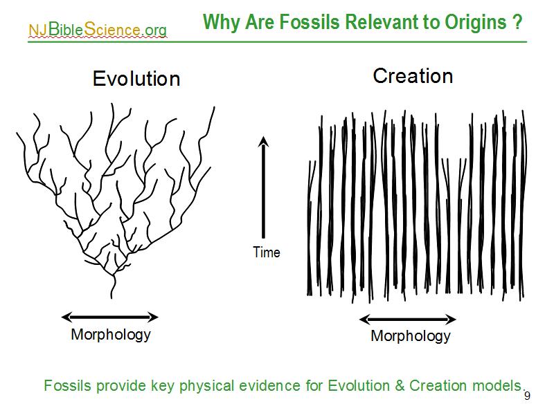 Now conversely, what would we expect if life was created. The diagram on the right shows the “quantized” or “stovepipe” effect predicted by a creation. Once created, there would little or no change over time. We could have extinctions and maybe a full expression of a gene pool, like varieties of dogs or finches, but the structures should stay more or less constant over time.