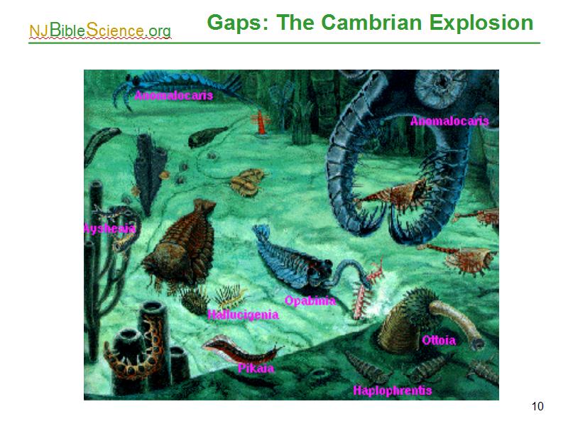 The “earliest” life is found at the so-called Cambrian explosion. Supposedly, about 550 million years ago life started. However when you look at the fossil record, complex invertebrate life just appears without predecessors. Sponges, snails, trilobites, jellyfish, worms, etc. just appear in the fossil record. No ancestors, no prototypes, no half-way types. Just Poof !