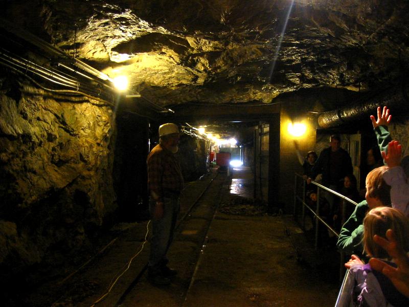 In the background you can see a door. This door was closed to help ventilate the mine. There were similar doors on each level of the mine. The miners would close all of the doors except a few to make sure that the deepest level of the mine was being ventilated. There were forced air blowers on the surface that made this possible.