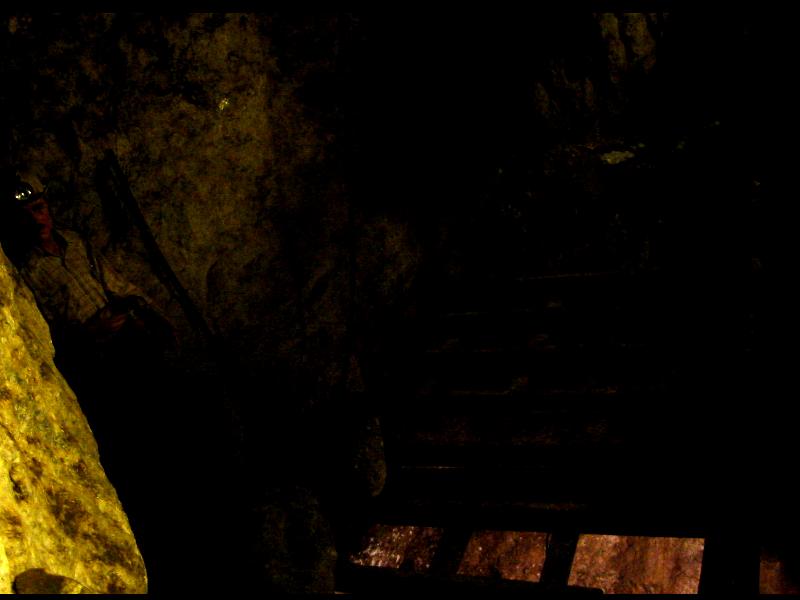 Under the grizzly the ore is dumped into a chute down to ore cars for transport to the main ore chute to the underground ore crushers