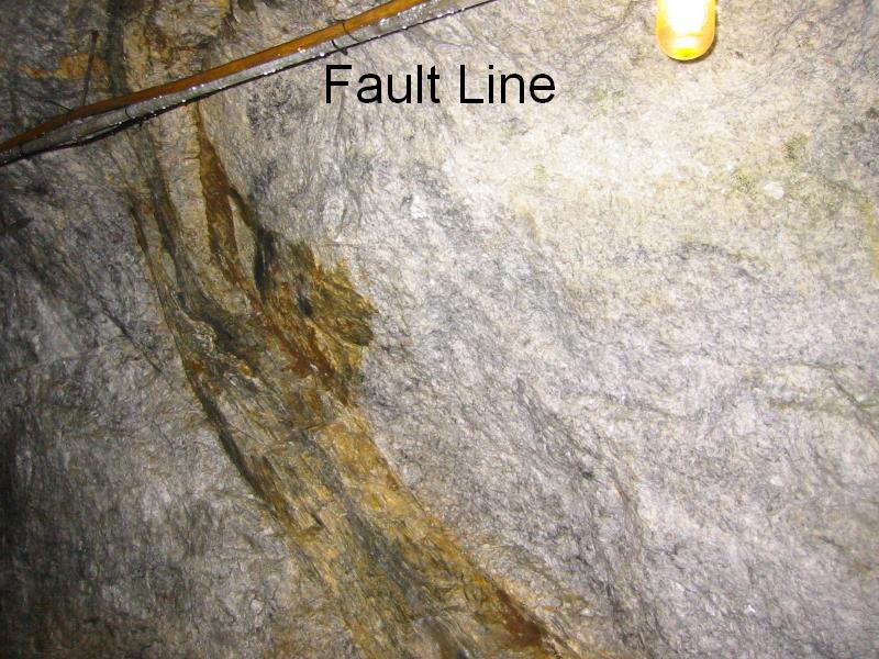 At various locations in the mine you will come across faults in the rock.